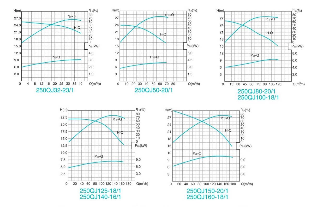 | 4 | 250QJ32-207/9 | 1530 | 155 | 37 | 1076 | 165.6 | 2875 | 2.5 | 3×25 | 233 |