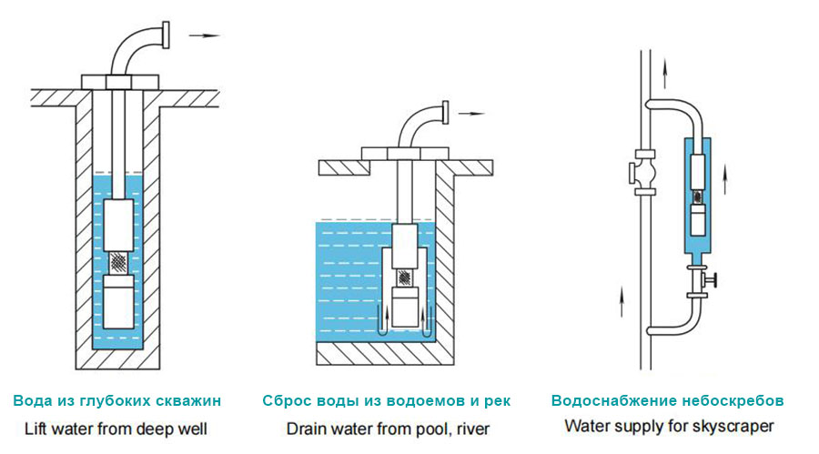 To'plamga to'g'ridan-to'g'ri integratsiya, chuqur suvda ishlash. Asosan qishloq xoʻjaligi yerlarini sugʻorish, shaharlarni suv taʼminoti va kanalizatsiya, sanoat va togʻ-kon korxonalari uchun ishlatiladi.