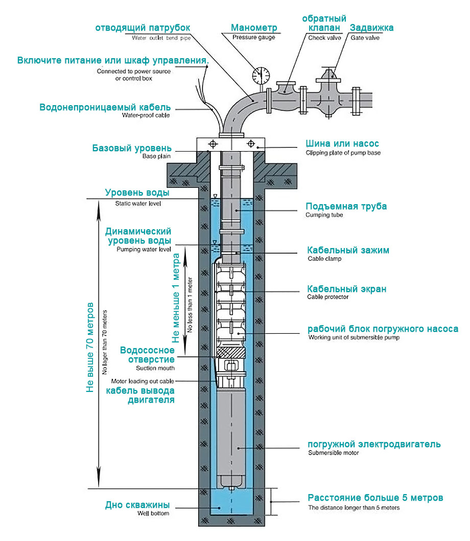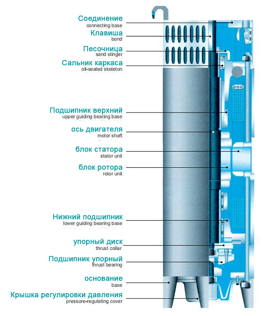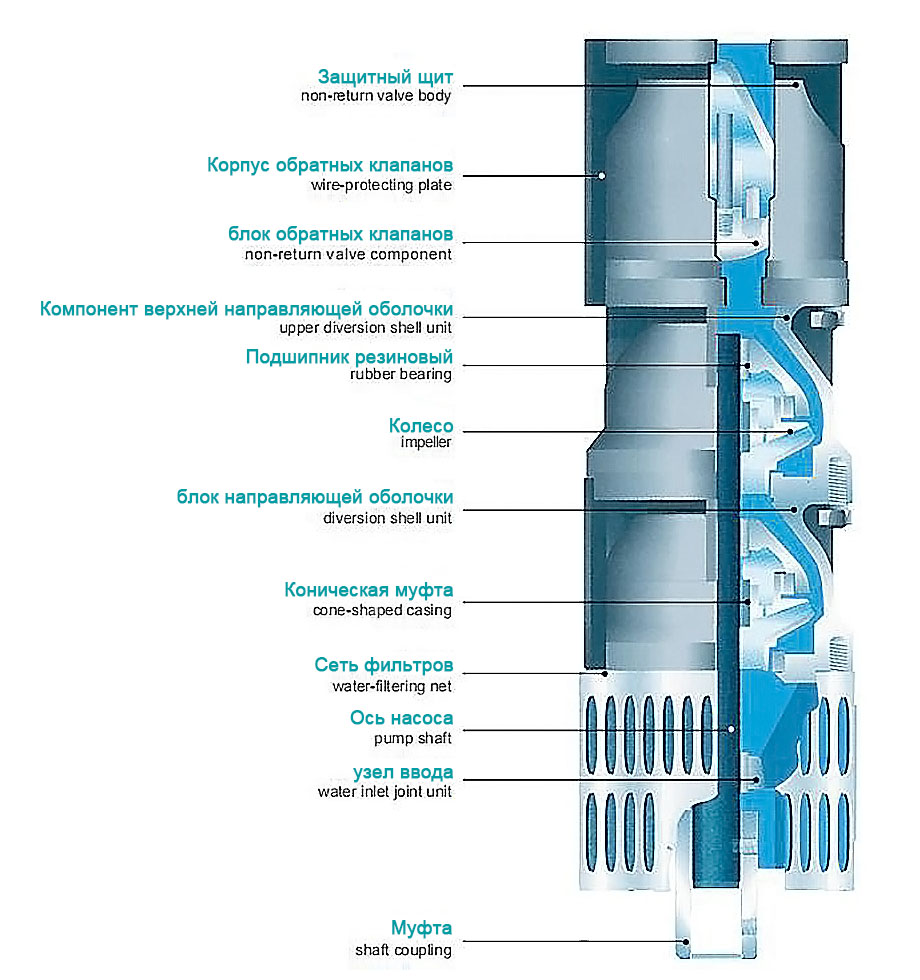 1. Suv osti elektr nasosi besh qismdan iborat: suv pompasi, vosita, suv liniyasi, suv o'tkazmaydigan kabel va boshqaruv tugmasi. Nasoslar bir so'rg'ichli ko'p bosqichli vertikal santrifüjli uch silindrli nasoslardir.