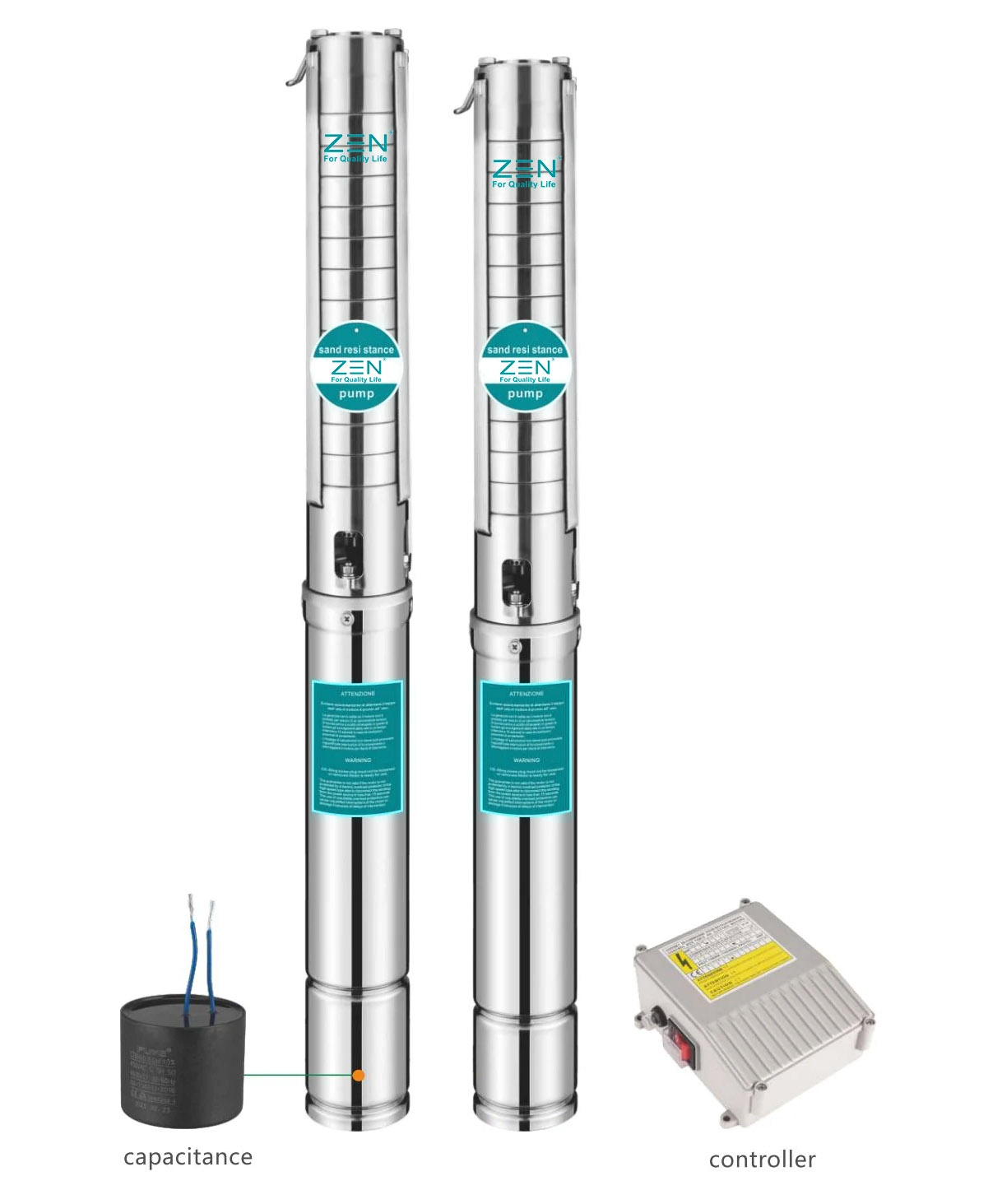 ZEN brendi Xitoyda chuqur quduqlar uchun 4SP suv osti nasosining yirik ishlab chiqaruvchisi va yetkazib beruvchisi. Identifikator* 4BR*4: Quduq diametri: 100mm (4")*SP: QJ seriyali suv osti nasoslari* M: bir fazali vosita (Msiz uch fazali)*2: Imkoniyat (m³/soat)* 06: Sahna* 0,37: Dvigatel quvvati (KVt)
