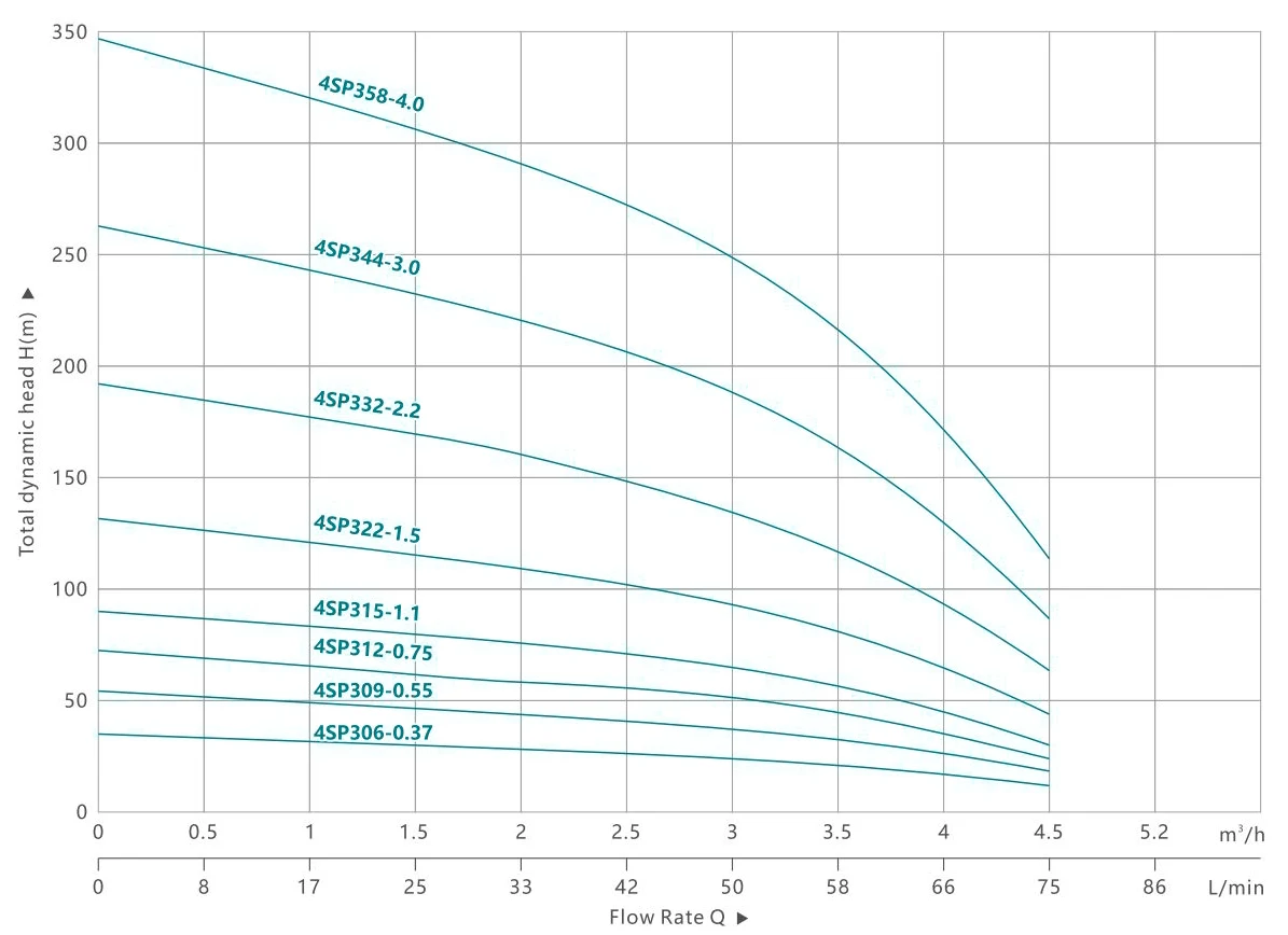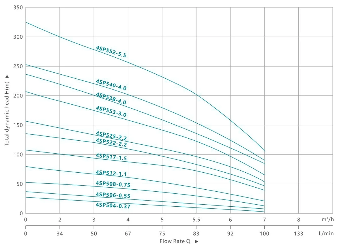 | 4SP255-3.0 | 3.0 | 4.0 | 336 | 312 | 292 | 275 | 253 | 220 | 182 | 116 | 80 | 8 | ||