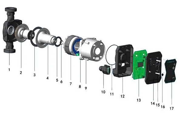 | 1 | Nasos korpusi Pervane Magnit uzuk Val Yo'naltiruvchi podshipnik Radial podshipnik Radial podshipnikli vtulka Nasos qopqog'i Magnit halqali yeng Magnit uzuk to'plami |
