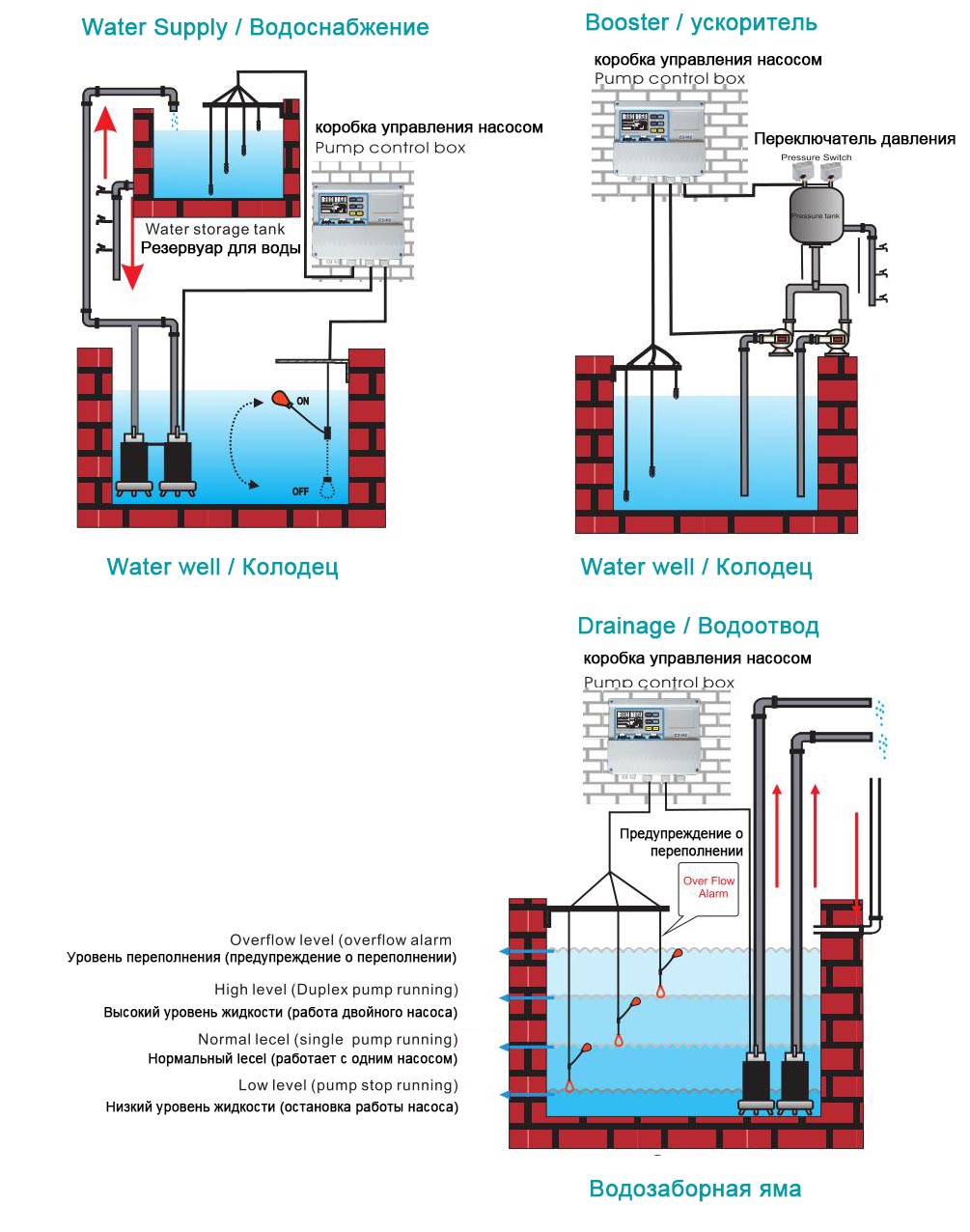 ◆ Boshqarish rejimi: qo'lda / avtomatik, er-xotin nasoslarni avtomatik almashtirish, avtomatik nosozliklarni almashtirish