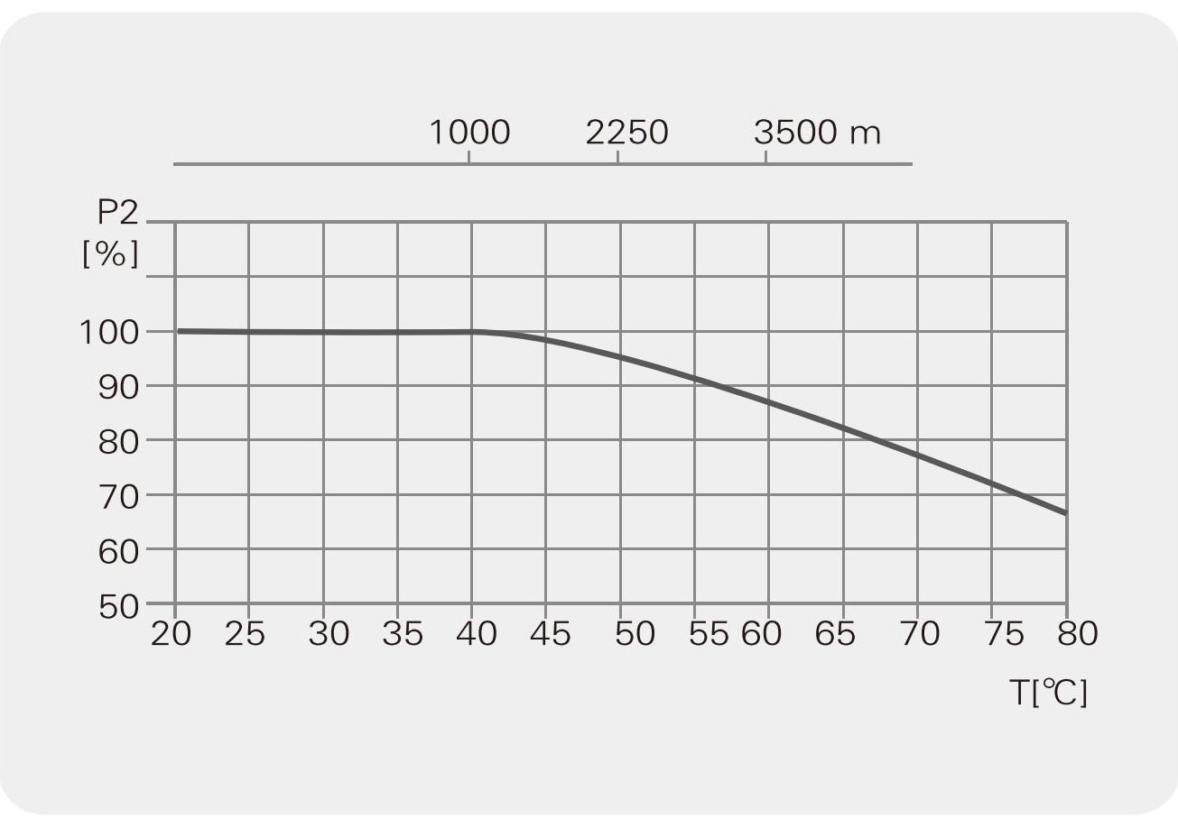 Nasos ishlaganda atrof-muhit harorati 40 C dan yuqori yoki . 1000 m dan ortiq balandlikda havo zichligi pastligi va sovutish effekti pastligi sababli P2 dvigatelining chiqish quvvati pasayadi. Yuqoridagi holatda nasosning ishlaydigan dvigatel quvvati katta bo'lishi kerak.