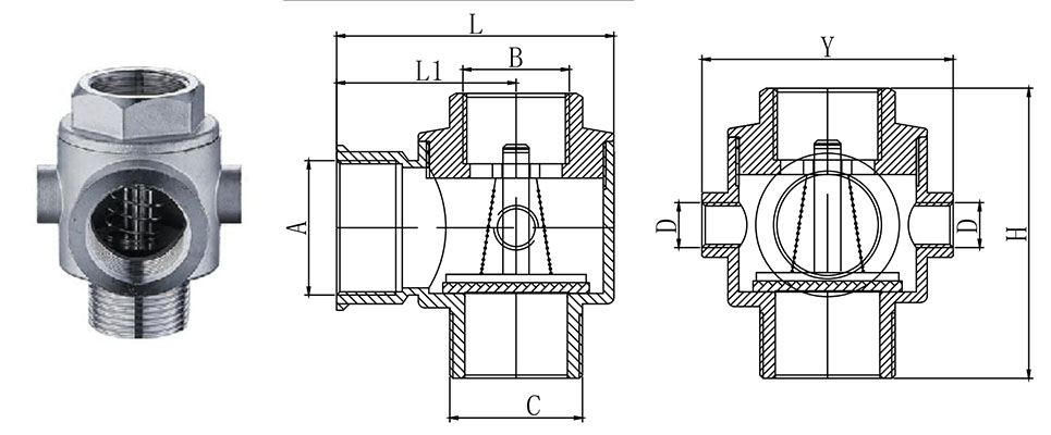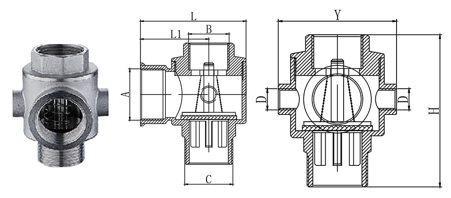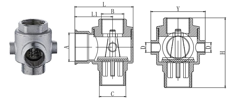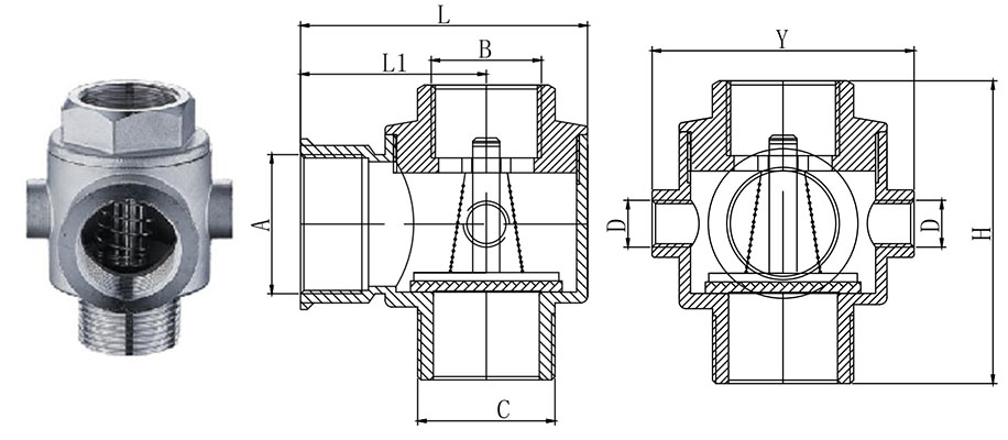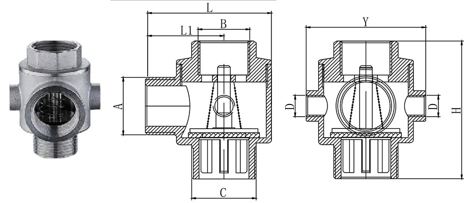 | Model | A | B | C | D | H | Y | L | L1 | Massa (gram) |