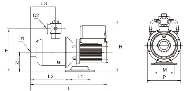 | Model | D1 | D2 | N | E | L1 | L2 | L3 | L | H | M | P | G.W(kg) |