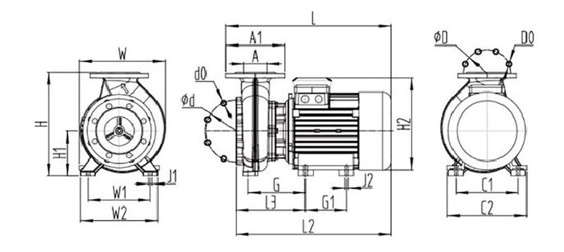 L (mm) | L2 (mm) | L3 (mm) | H (mm) | H1 (mm) | H2 (mm) | Vt (mm) | W1 (mm) | W2 (mm) | J1 (mm) | C1 (mm) | C2 (mm) | J2 (mm) | G (mm) | G1 (mm) | A1 (mm) | A (mm) | d (mm) | D (mm) | D0 (mm) |