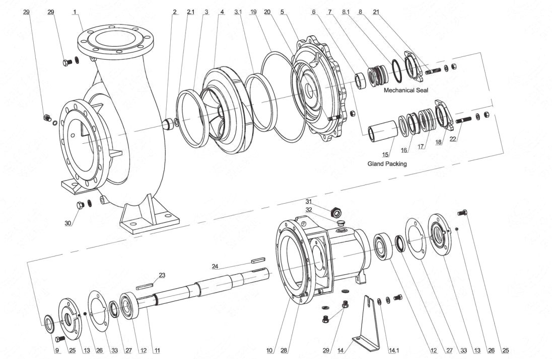 AD seriyali DIN24255 / EN 733 standart so'nggi nasoslar va motorlar