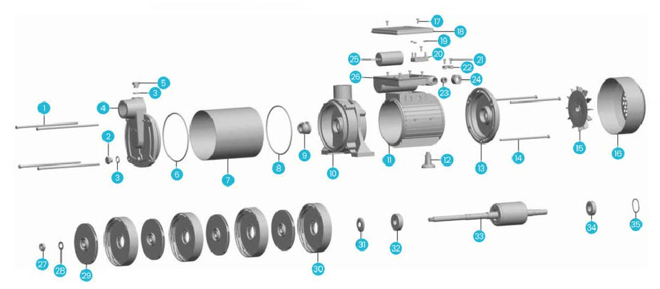 | 9 | Mexanik muhr | 21 | Mexanik muhr | 33 | Rotor | ||||||