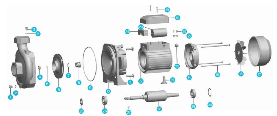 | 8 | Mexanik muhr | 18 | Mandal | 28 | Rotor | ||||||