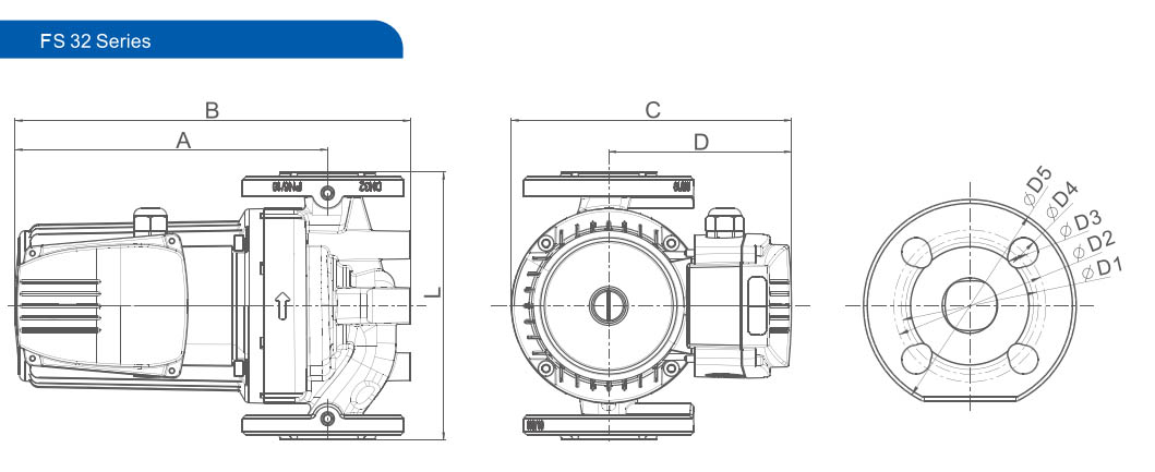 | FS32-6 | 250/210/200 | 9/8,3/7,1 | 6,3/6,1/5,8 | ● | 220 | 233 | 292 | 228 | 80 | 90 | 100 | 14 | 19 | 140 | DN32 | |