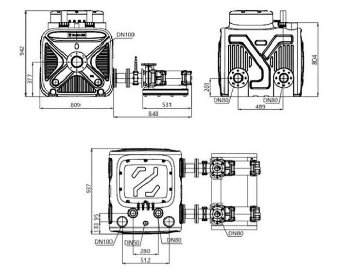 WL - 70L uchta suv olish teshiklari DN100, ikkita suv olish yoki ta'mirlash teshiklari DN50 va bitta chiqish DN80 mavjud. Yuqori qismi DN50 egzoz porti bilan jihozlangan. Suv sathining monitoringi ixtiyoriy bosim taqsimlash sensori bilan ikki tomonlama suzuvchi sharli sensor yordamida amalga oshiriladi. Xitoyning LED displeyli devorga osilgan boshqaruv qutisini sozlash motorni himoya qilish va nosozliklar haqida ogohlantirish kabi ko'proq funktsiyalarni amalga oshirishi mumkin.