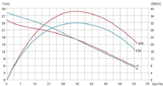 Eslatma:——nasos quvvati P2 = 0,75 kVt