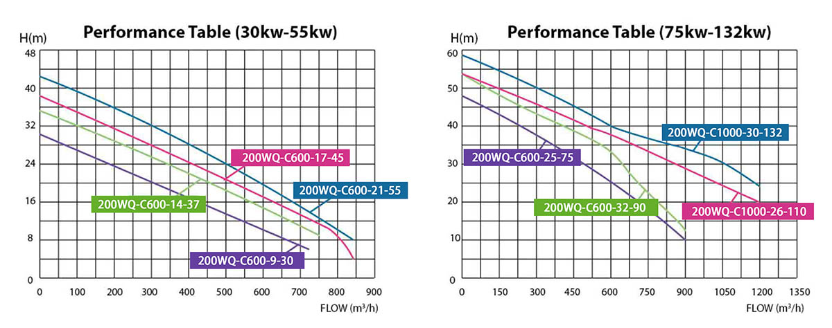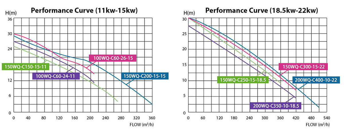 ② ZEN WQ-C Nasos har bir nuqtada oqimdan foydalanishi mumkin. Quvvat deyarli bir xil. Dvigatel harorati deyarli bir xil.