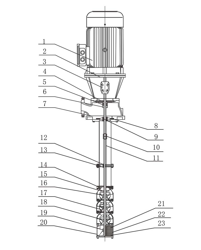 Yuqori sifatli ZEN Machinery XBD uzun milyali vertikal turbinali yong'in pompasi bir nechta markazdan qochma pervanellar, hidoyat korpuslari, suv quvurlari, transmissiya vallari, nasos bazasi motorlari va boshqa komponentlardan iborat. Nasos bazasi va dvigatel havzaning ustida joylashgan bo'lib, dvigatelning kuchi suv trubkasi bilan konsentrik transmissiya mili orqali pervanel miliga uzatiladi va shu bilan oqim va bosim hosil qiladi.