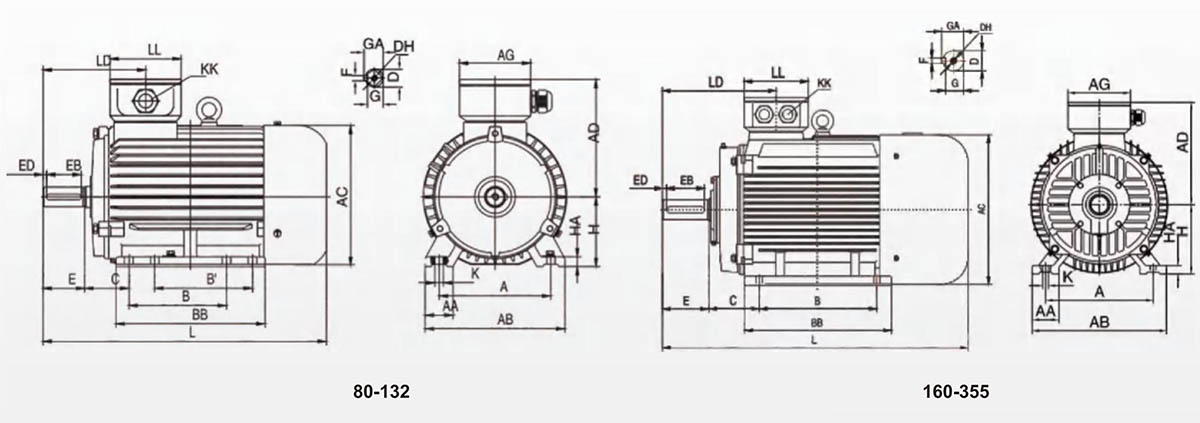 | 180M | 279 | 70 | 349 | 355 | 267 | 162 | 241 | 311 | 121 | 48 | M16X36 | 110 | 90 | 10 | 14 | 42.5 | 51.5 | 180 | 22 | 4-ph14.5 | 2-M40X1,5 | 688 | 271 | 152 |