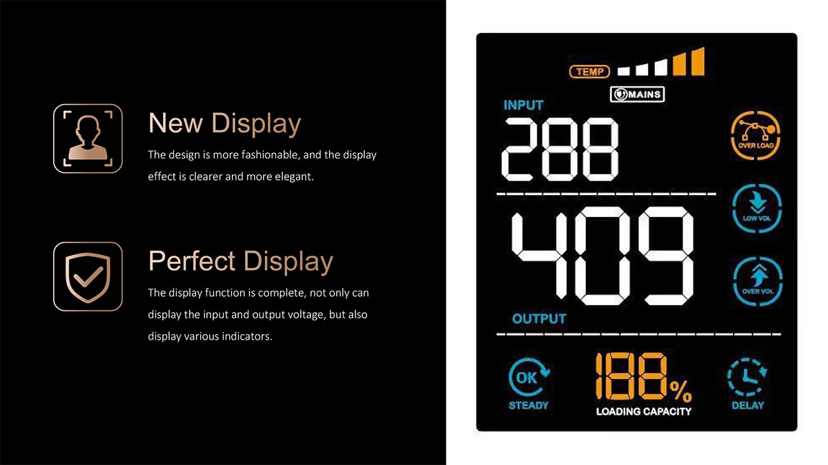 | Himoya | Haddan tashqari kuchlanish (246V±4V), ortiqcha yuk, yuqori harorat, qisqa tutashuv | |||||